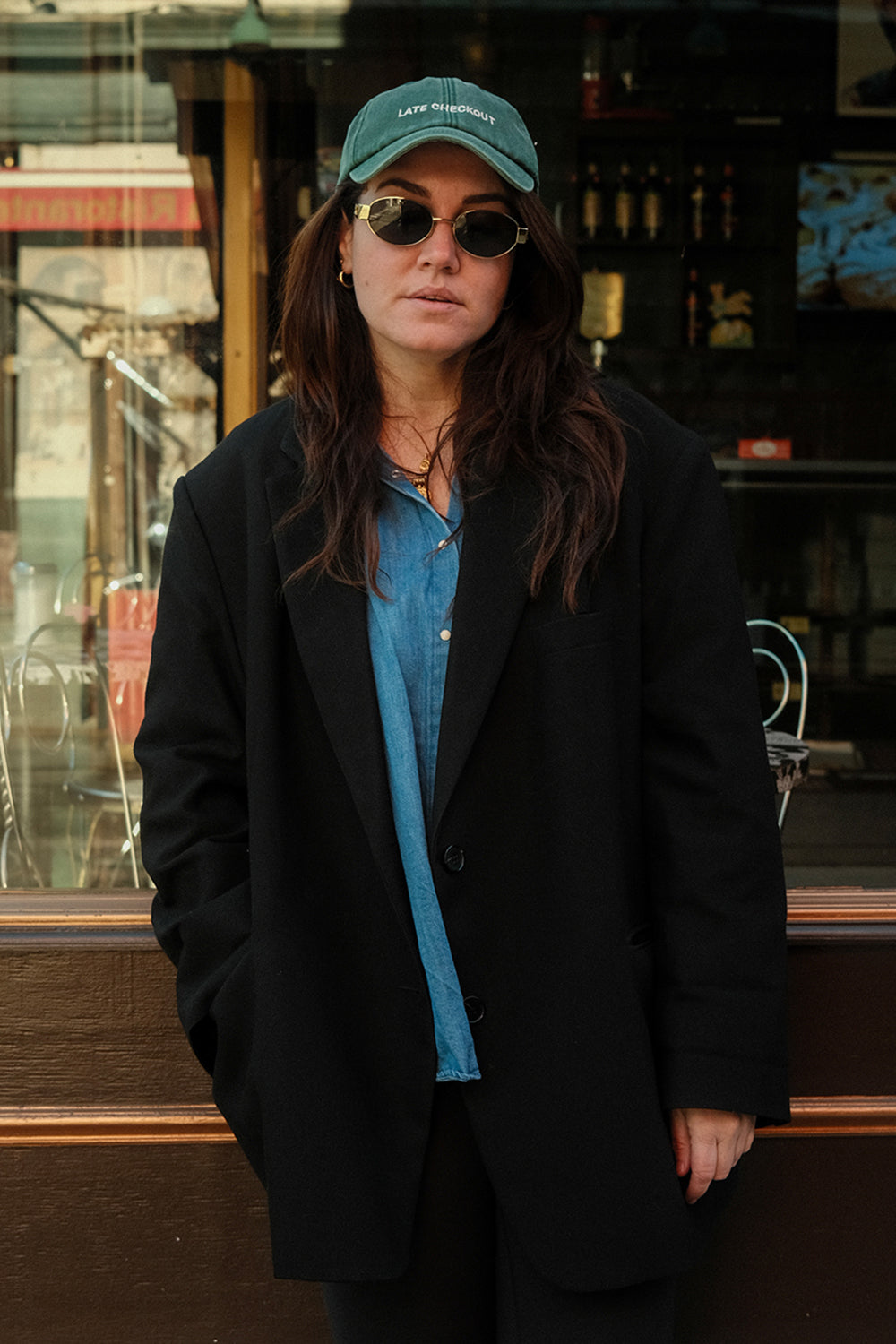This cap is designed for anyone who shares the sentiment of craving an extra day off. The color palette of the collection draws inspiration from a dew-covered water bottle resting on a table in a quaint French bistro. During one of our excursions, the idea for the embroidery took shape as we sketched it on a napkin in a local restaurant.